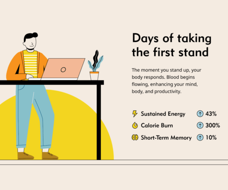 Simply by swapping out your chair for a treadmill desk or bike desk for just a few hours a day, you can significantly reduce the effects caused by inactivity. Within a few weeks, your legs will be strengthened and stamina will increase. Soon enough you might feel more comfortable standing than sitting!