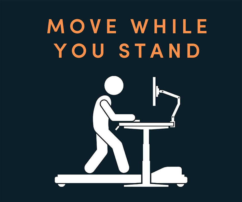 What’s the right balance between sitting, standing and moving? Adding a standing desk pad or standing board to your desk can take some getting used. We recommend that 25-50% of your work day include varied movement such as standing with a mat or a board, walking on a treadmill desk, or even pedaling at a bike desk.